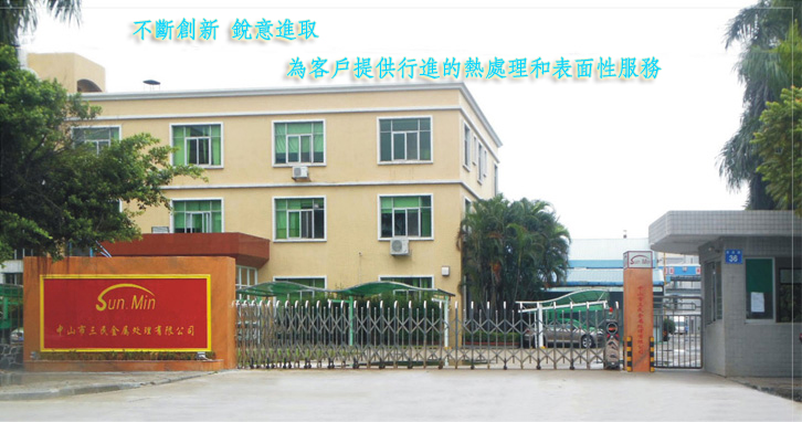 Zhongshan Sanmin Metal Treatment Co., Ltd. is located in Zhongshan City, the hometown of the great man Sun Yat-sen. It is a processing enterprise specializing in metal heat treatment and surface modification. Sanmin Company has successively introduced advanced surface modification technologies and equipment from Germany and Japan, providing customers with advanced metal heat treatment and surface modification technical services. It is widely applied in fields such as home appliances, OA, optical products, automatic vehicles, and mechanical manufacturing. Not only does it meet the needs of customers in the new century, but it also always pays attention to the technical quality of its services, becoming a metal surface treatment enterprise renowned both at home and abroad. In recent years, Sanmin Company has invested tens of millions of yuan to build a new processing plant with advanced equipment. Currently, the plant covers an area of 10,012 square meters and occupies a land area of 21,300 square meters. With approximately 280 employees, over the past decade or so, Sanmin Company has won high praise from a wide range of customers with its advanced technological level and continuously improving quality assurance. We have become long-term partners of many internationally renowned enterprises such as SONY, EPSON, HONDA, TOYOTA, Panasonic, CANON, OLYMPUS, APPLE, RICOH, NIKON, LIGHT-ON, Kyocera Optics, FORD, Huawei, and EATON. Nowadays, Sanmin Company will continue to adhere to the principle that "customer satisfaction is our wish", constantly innovate, forge ahead with determination, and wholeheartedly serve all new and old customers.